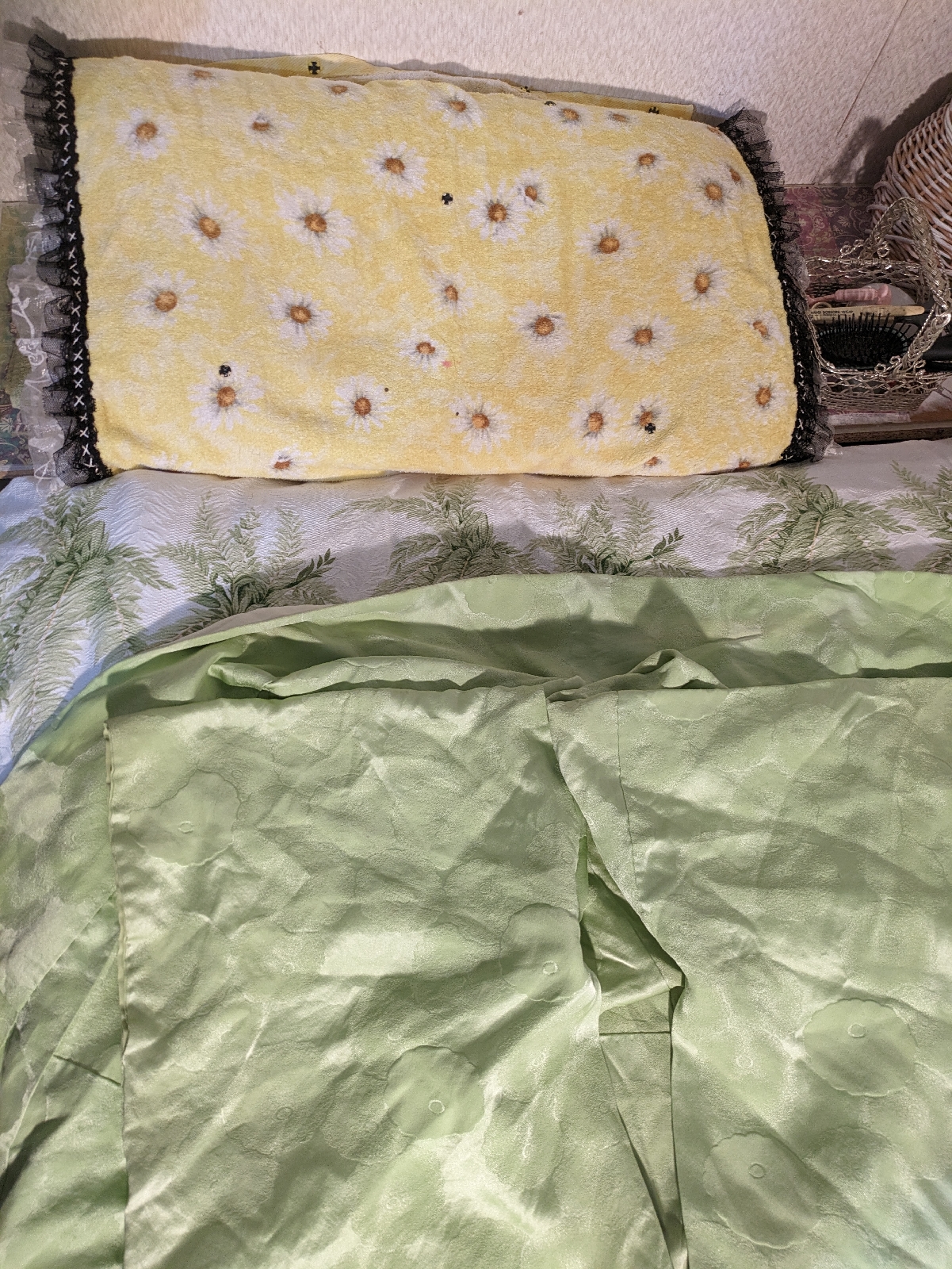 ベッド脇に置いてある 自作の白い棚の上には 少ないんですけど お化粧品等がね 置いてあるんです セミシングルの小型のベットが欲しいかな 今のベッドはありあわせなので とりあえずです